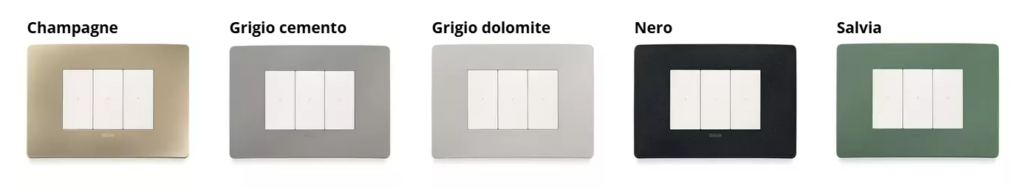 Plana Up offre una palette di colori ampia e coerente con i trend dell’interior design. Le placche Vimar Plana Up sono disponibili in 13 finiture esclusive e valorizzate dalla nuova texture Matt: